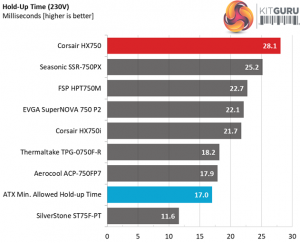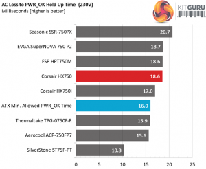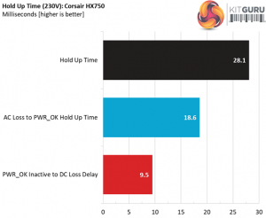 The hold-up time is quite long and the same applies for the period between the power cut and the moment that the PSU informs the mainboard that it needs to shut down, through the power-ok signal.