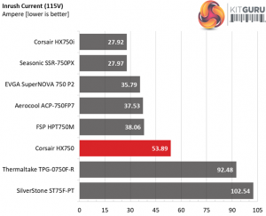The inrush current is high, with both 115V and 230V input. It might not reach the levels of High Power's platforms, but we would like to see lower readings here.