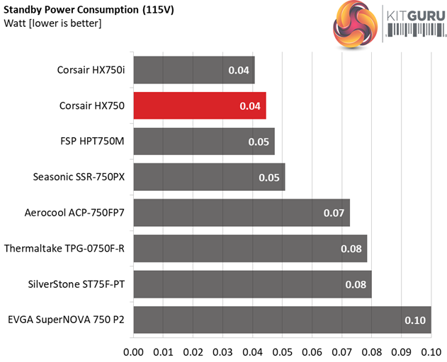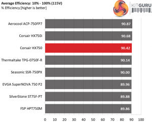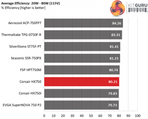 With normal loads the HX750 takes over the third place, while with light loads it is away from the highly efficient Aerocool ACP-750FP7, which is based on Andyson's Titanium platform.