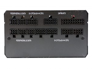 The modular panel includes twelve sockets in total, five for the peripheral cables, an equal number for the EPS and PCIe cables and a pair for the main ATX cable.