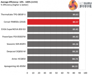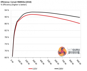 With normal loads the RM850x takes over the second place while with light loads it falls a little behind.