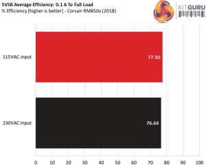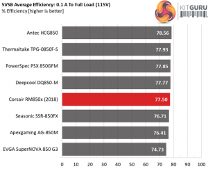 The supply should also achieve higher than 75% efficiency at 5VSB under full load, or with 3A if its max current output on this rail is higher than 3A.