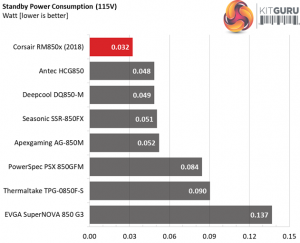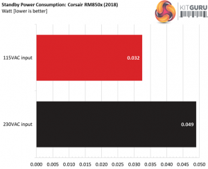 In the table below, you’ll find the power consumption and voltage values of all rails (except -12V) when the PSU is idle (powered on, but without any load on its rails), and the power consumption when the unit is in standby mode (without any load, at 5VSB).