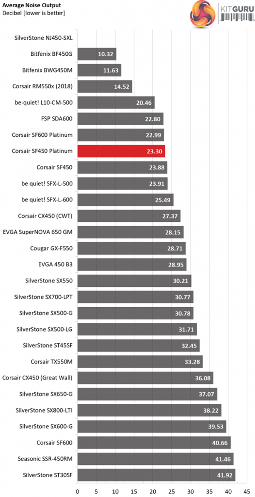 The difference in overall noise output is not so large between the Gold and Platinum SF450 models. On the contrary, the difference is enormous in the SF600 units.