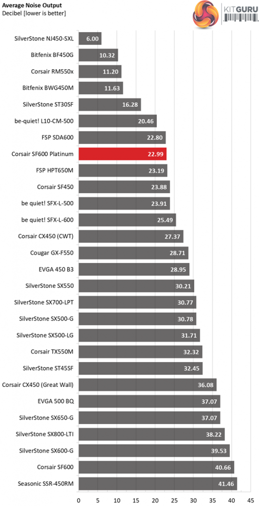 Hand's down this is the best performer in the SFX category, with SilverStone's passive unit coming second. Corsair along with Great Wall proved for another one time that they are on top of the game.