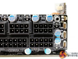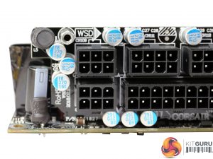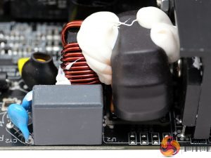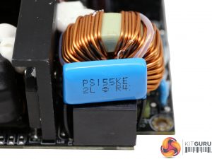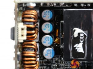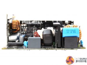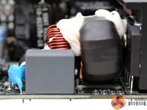The filtering caps, both polymer and electrolytics, in the secondary side are provided by Chemi-Con. The only exception is one of the caps that filters the 5VSB rail, which is made by Rubycon.