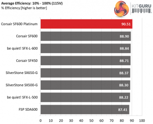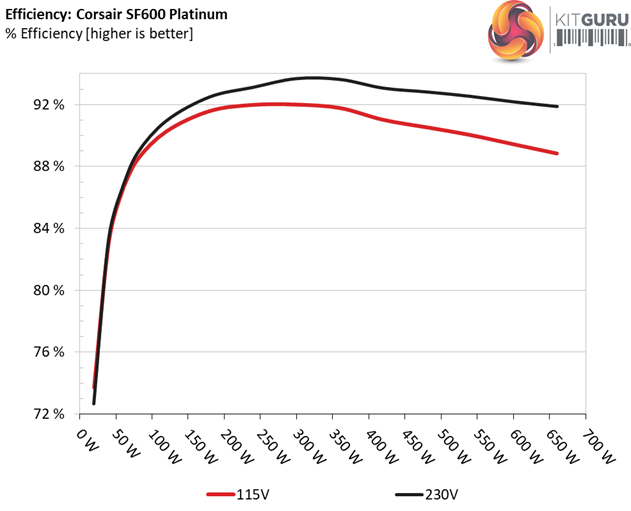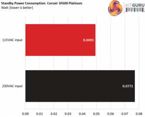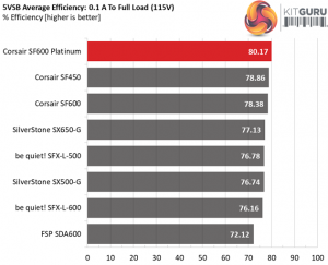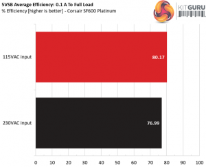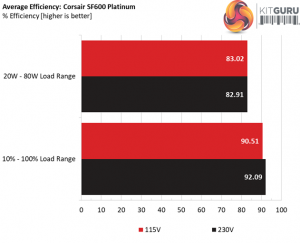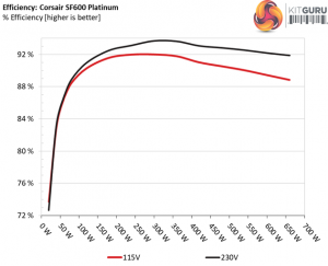 The SF600 Platinum achieves amazing efficiency levels under both light and normal loads. It is nice to see a platform featuring high efficiency along with tight load regulation since in some cases the engineers have to sacrifice a percentage of load regulation, in order to increase efficiency.