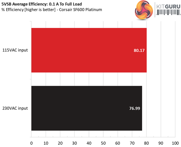 The 5VSB rail is among the best we have encountered so far. Besides good load regulation it also achieves sky high efficiency levels.
