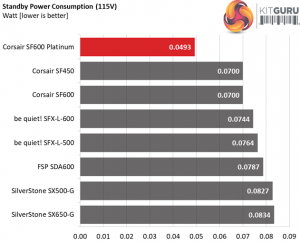 In the table below, you’ll find the power consumption and voltage values of all rails (except -12V) when the PSU is idle (powered on, but without any load on its rails), and the power consumption when the unit is in standby mode (without any load, at 5VSB).