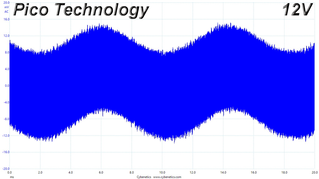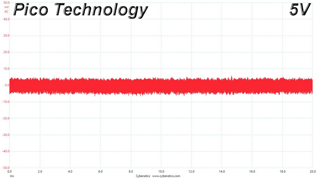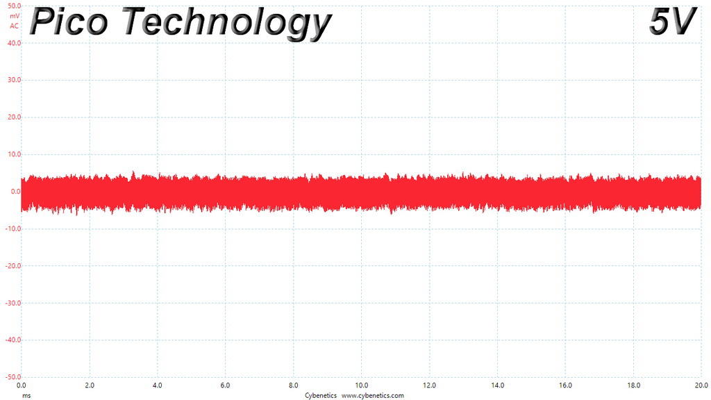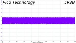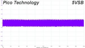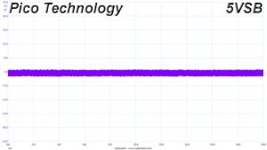 The following oscilloscope screenshots illustrate the AC ripple and noise registered on the main rails (+12V, 5V, 3.3V and 5VSB). The bigger the fluctuations on the screen, the bigger the ripple/noise. We set 0.01 V/Div (each vertical division/box equals 0.01V) as the standard for all measurements.