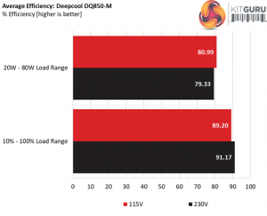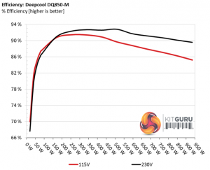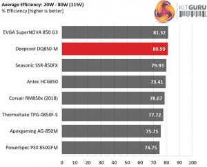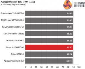 Under normal loads the DQ850-M is close to the competition and with light loads it performs better than the majority of its opponents, losing only to the Leadex II platform of the EVGA 850 G3 model.