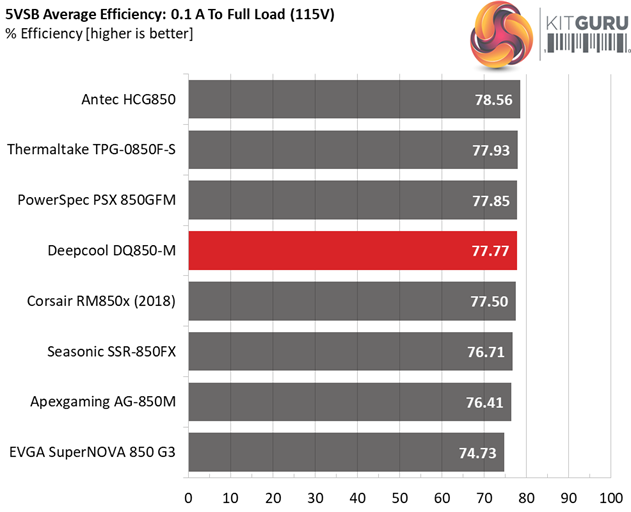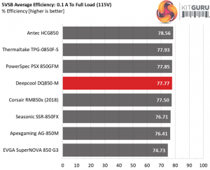 The supply should also achieve higher than 75% efficiency at 5VSB under full load, or with 3A if its max current output on this rail is higher than 3A.