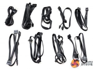 All cables are long enough and the distance between all peripheral connectors (apart from a single 4-pin Molex) is ideal at 15 cm. What strikes us as odd is the addition of a fixed FDD connector in one of the modular cables. FSP should add instead a 4-pin Molex and provide an inexpensive 4-pin Molex to FDD adapter. This would also raise the number of 4-pin Molex connectors to four.