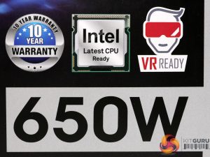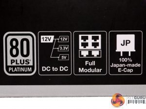 Right below the power supply photo we find a number of icons including the 80 PLUS Platinum badge, the series description along with the unit's wattage and three more icons describing the ten-year warranty, the compatibility with the newest Intel CPU sleep states and the support for systems strong enough to allow for VR gaming.