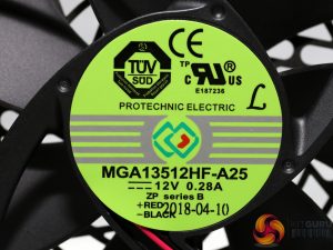 You can never go wrong with a Protechnic Electric fan, since they are of high quality. The fan's model number is MGA13512HF-A25 and it uses a fluid dynamic bearing which will last for long.