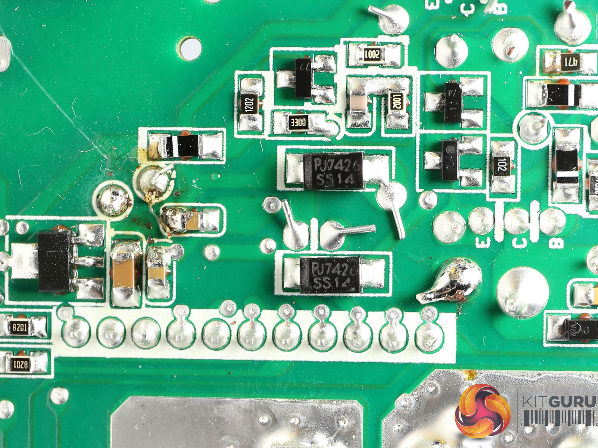 The soldering quality is not the best we have seen from FSP; in some areas we notice sloppy solders and to make matters worse, we also find some pretty long component leads, which we hate to see since they are a sign of inferior quality control.