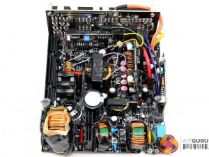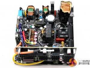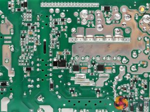 In the primary side a half-bridge topology is used along with an LLC resonant converter, while in the secondary side two FETs regulate the +12V rail and a couple of voltage regulation modules handle the minor rails.