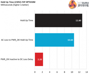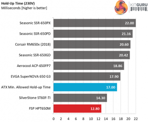 The hold-up time is low, which is a great shame for a high-end 650W unit.