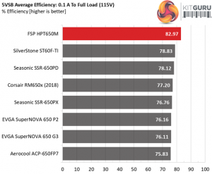 FSP is known for its highly efficient 5VSB circuits. The moment other manufacturers don't care so much about this rail, FSP's engineers strive to provide the best possible 5VSB efficiency and the results are just great! This unit has one of the most efficient 5VSB rail's that we have ever encountered.