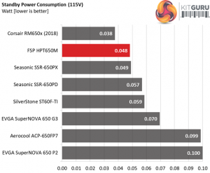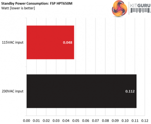 In the table below, you’ll find the power consumption and voltage values of all rails (except -12V) when the PSU is idle (powered on, but without any load on its rails), and the power consumption when the unit is in standby mode (without any load, at 5VSB).