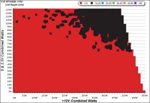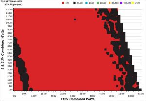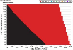 To generate the following charts, we set our loaders to auto mode through our custom-made software before trying more than 1500 possible load combinations with the +12V, 5V, and 3.3V rails. The load regulation deviations in each of the charts below are calculated by taking the nominal values of the rails (12V, 5V, and 3.3V) as point zero. The ambient temperature is between at 30°C (86°F) to 32°C (89.6°F).