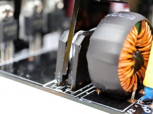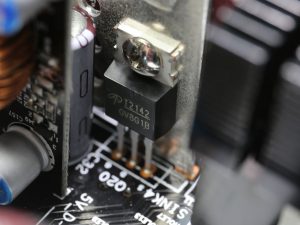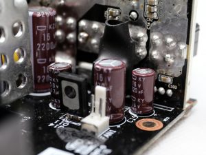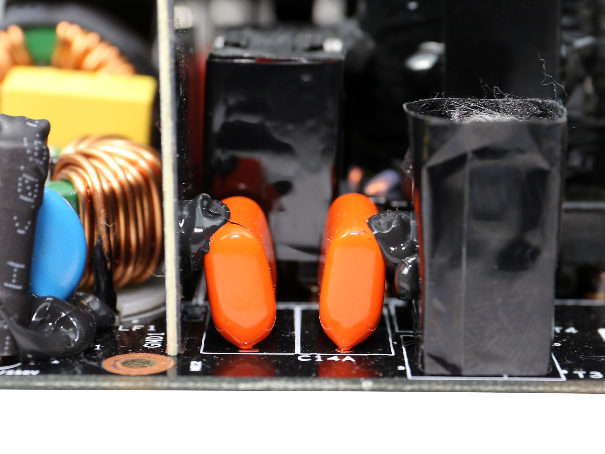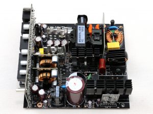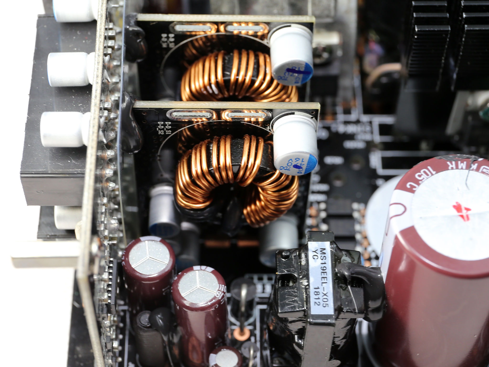 There is an NTC thermistor for protection against large inrush currents, and a bypass relay supports it. We expect to find this relay in every high-end platform since besides a small efficiency boost it also allows the fast cool down of the thermistor, so inrush currents are always kept under control (as long as the used thermistor is up to the task of course).