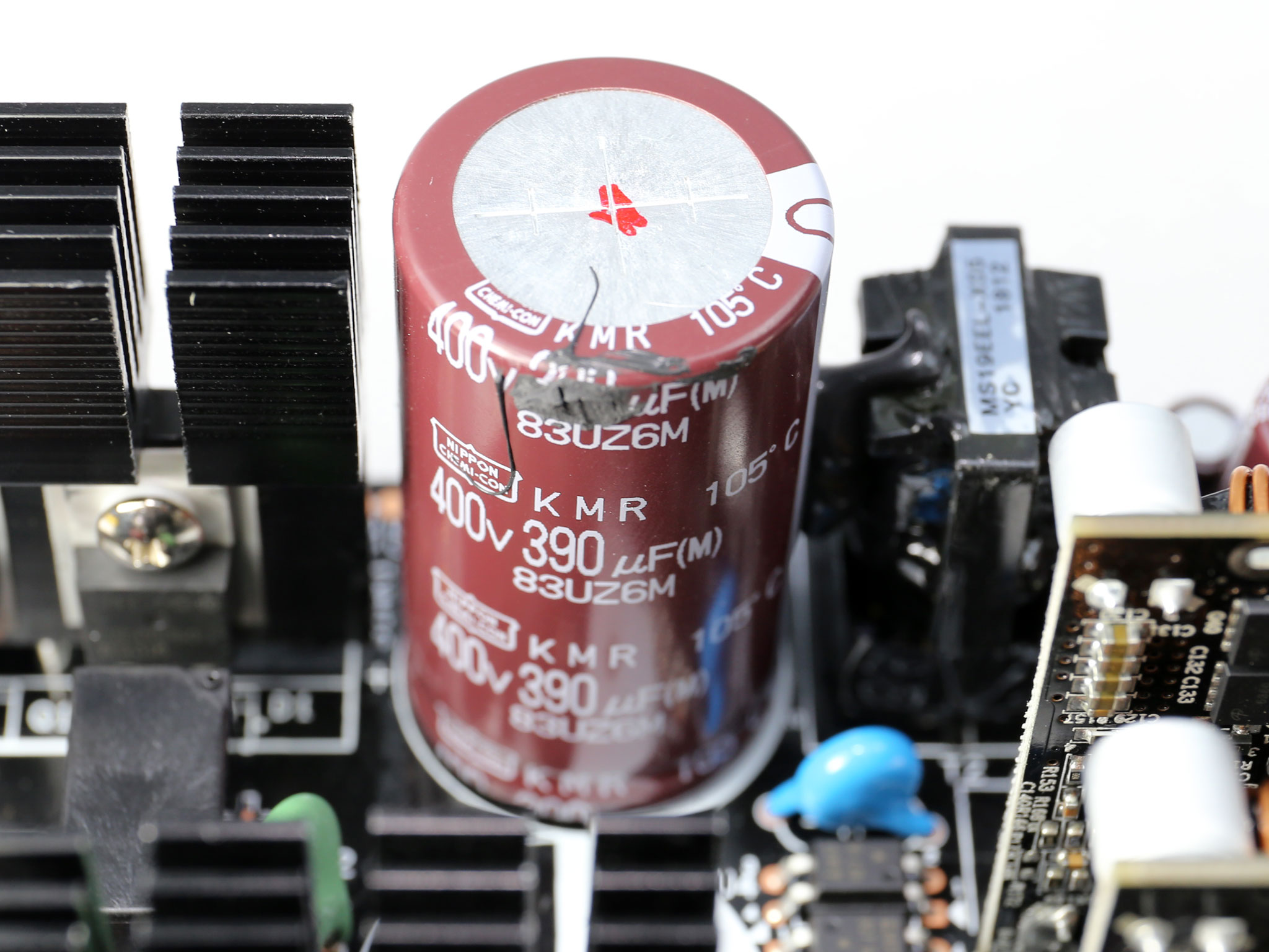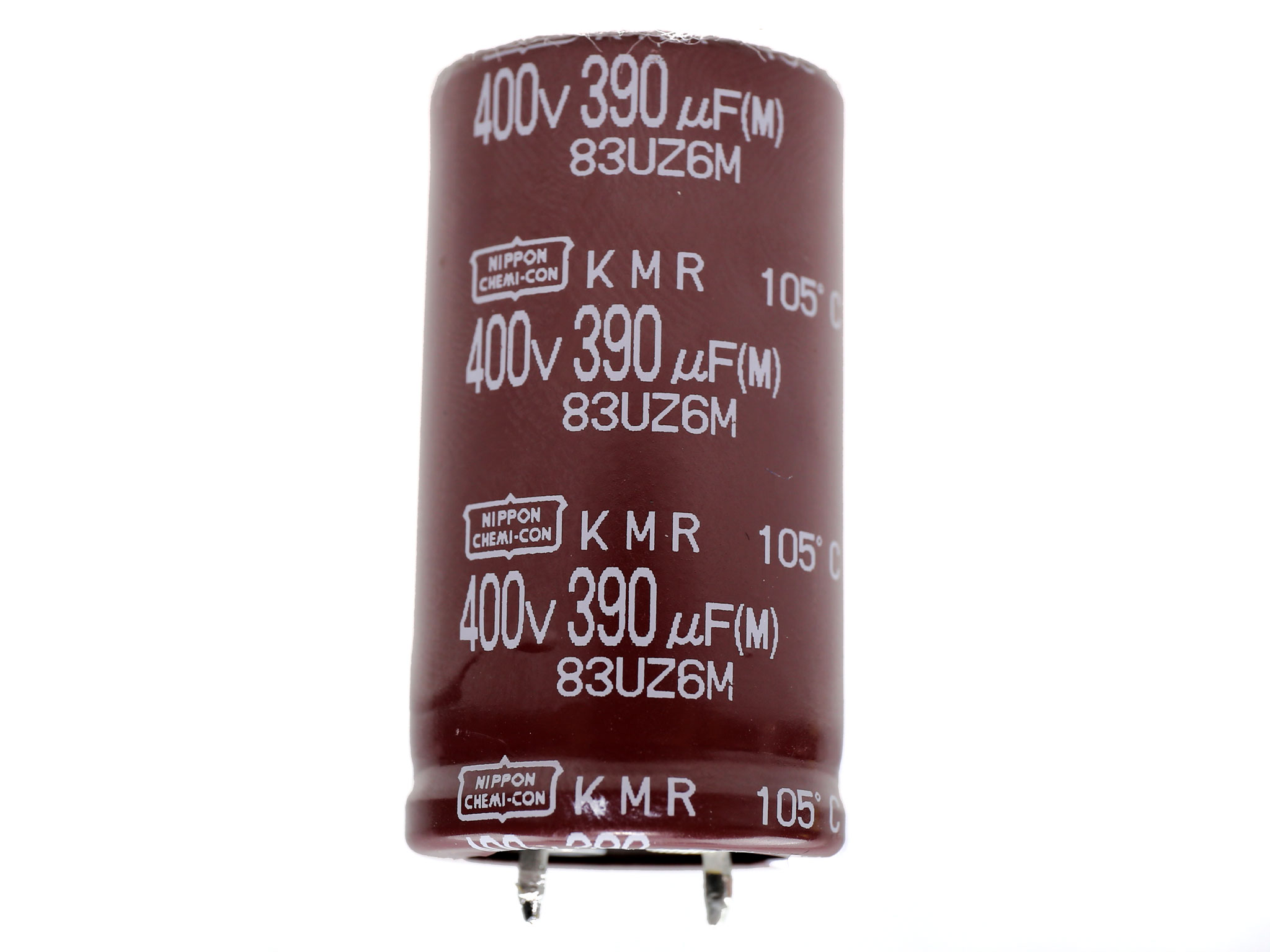 2x Nippon Chemi-Con (400V, 390uF, 2000h @ 105 °C, KMR)