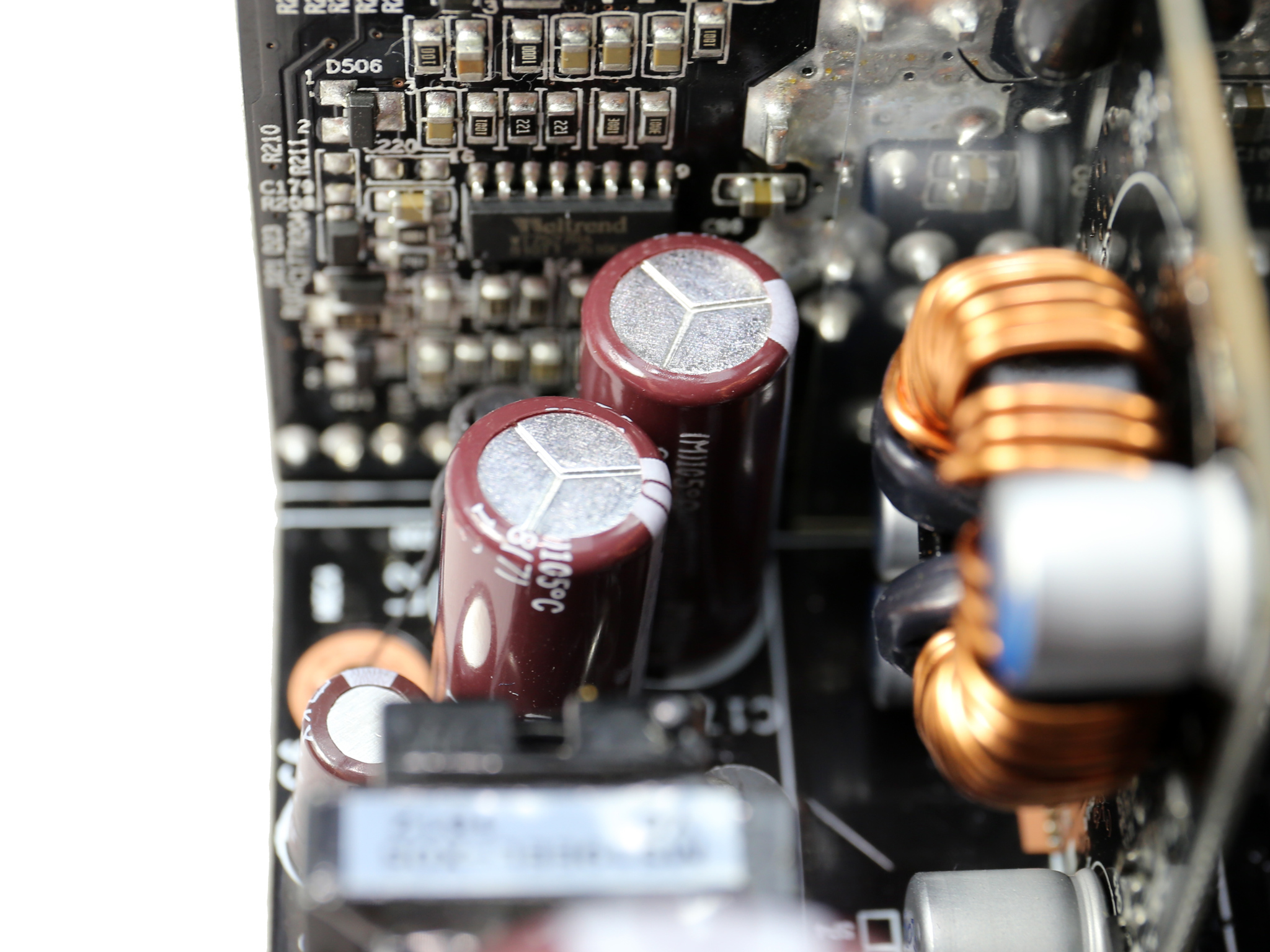 The PSU's protections handles a Weltrend WT7527A IC, located at the back side of the modular board. This IC also has over current protection for up to two +12V rails, besides the minor ones.