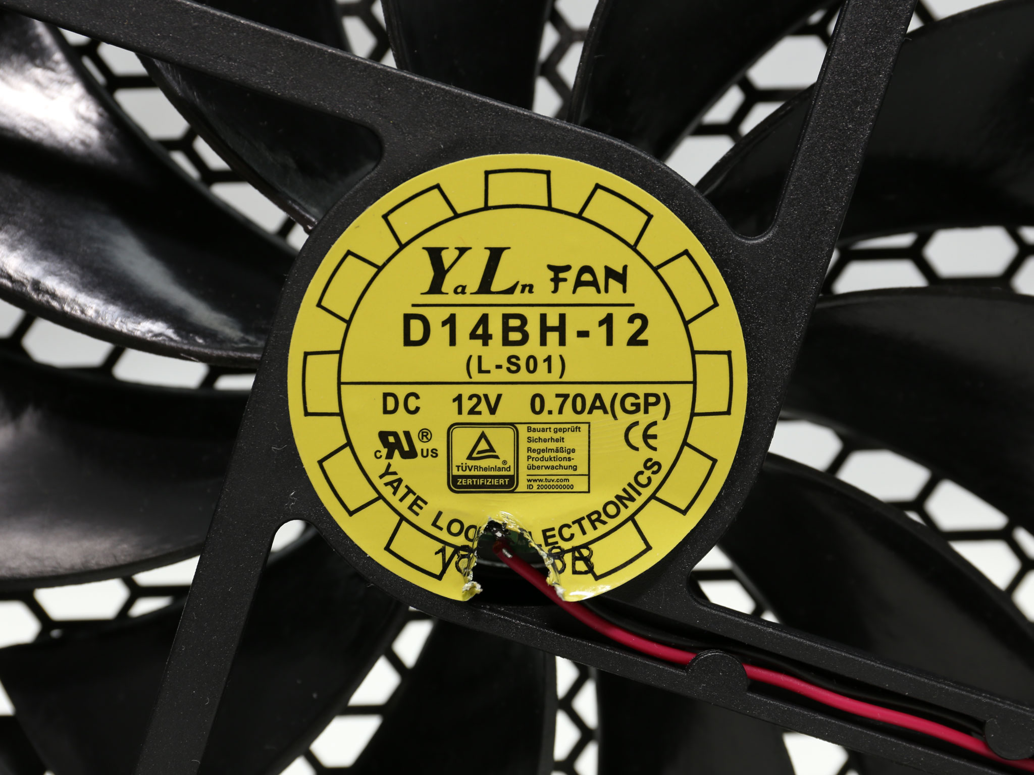 | Fan Model | Yate Loon D14BH-12 (140mm, 12V, 0.70A, 2800 RPM, 140CFM, 48.5 dBA, Double-Ball Bearing) |