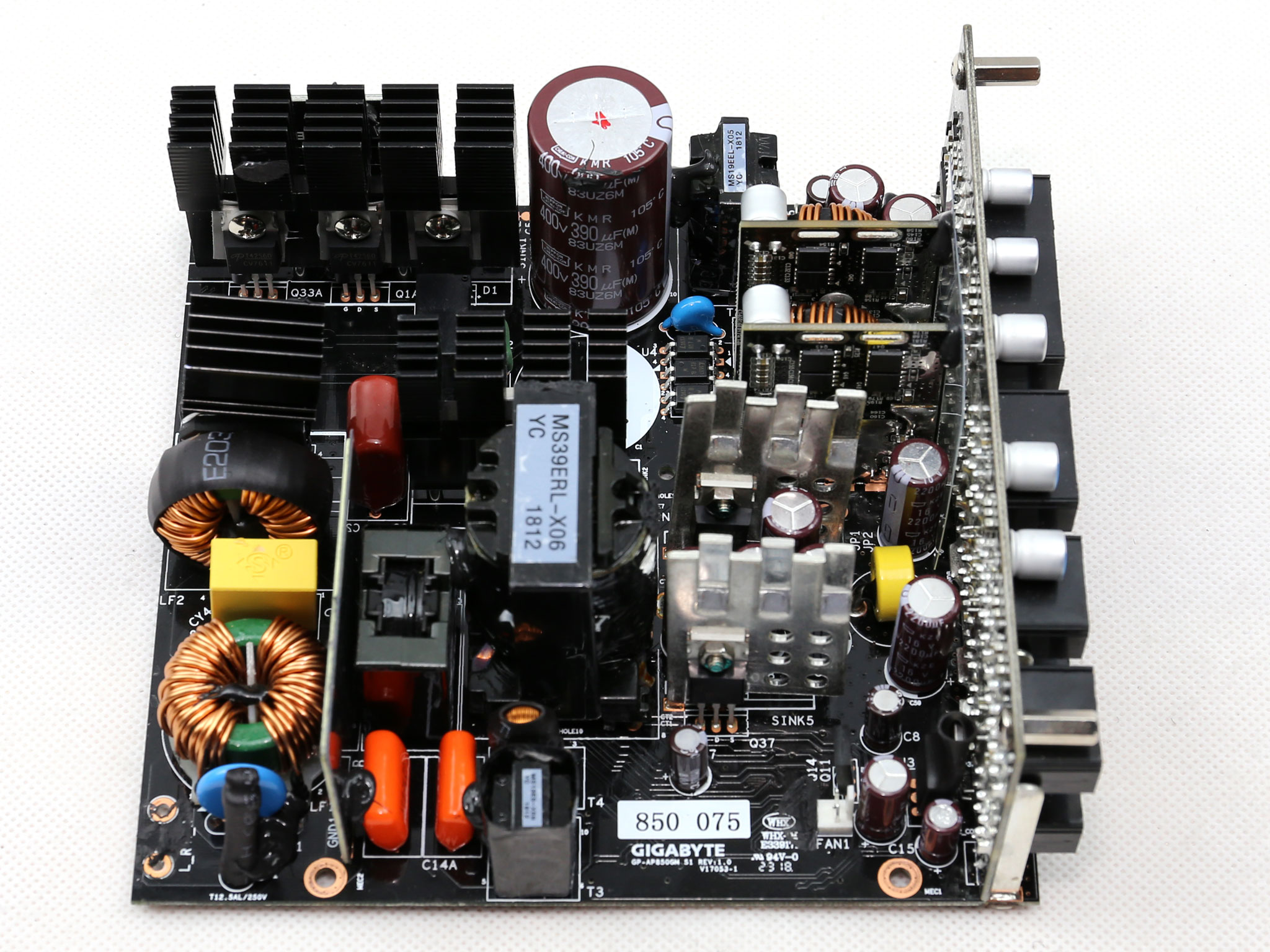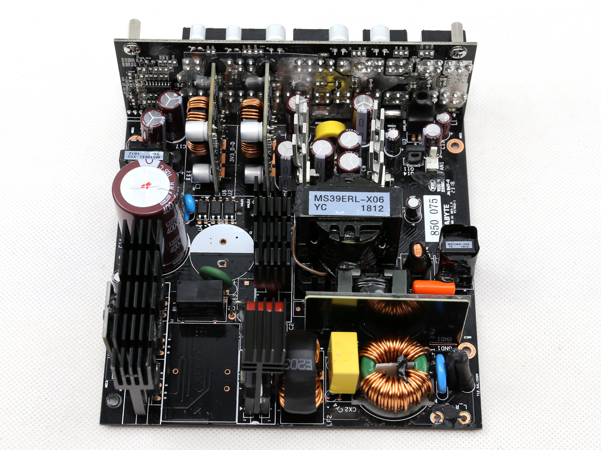 The cooling fan is provided by Yate Loon (D14BH-12) and it is very strong for a 850W and highly efficient platform like this one. It uses double ball bearings meaning that it won't have a problem operating under tough conditions. The fan profile is not aggressive, so under normal operation the PSU will be silent.