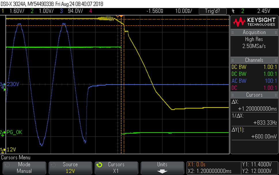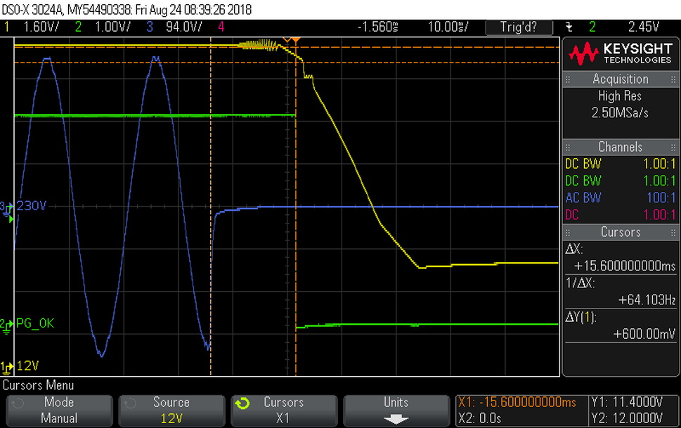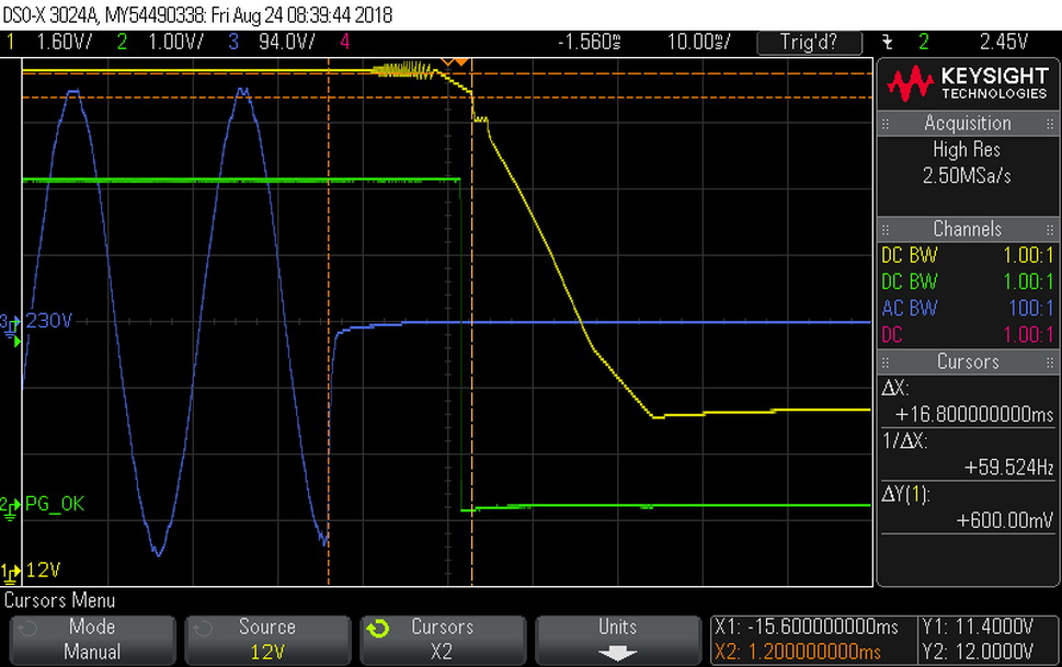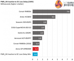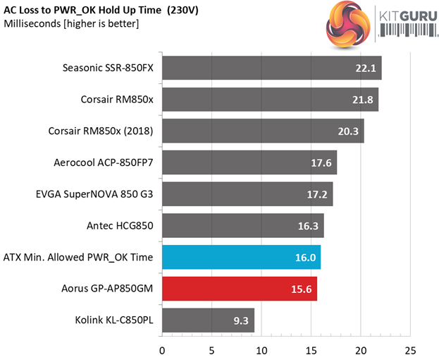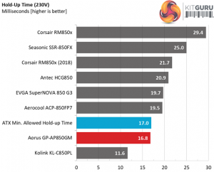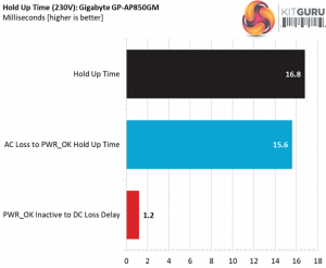 The hold-up time is only a hair away from what the ATX spec requires (17ms) and the power ok signal is close as well to 16ms.