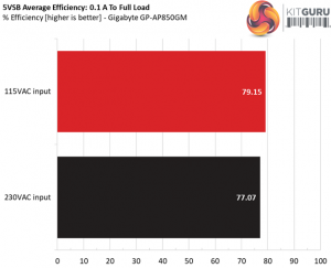 The supply should also achieve higher than 75% efficiency at 5VSB under full load, or with 3A if its max current output on this rail is higher than 3A.