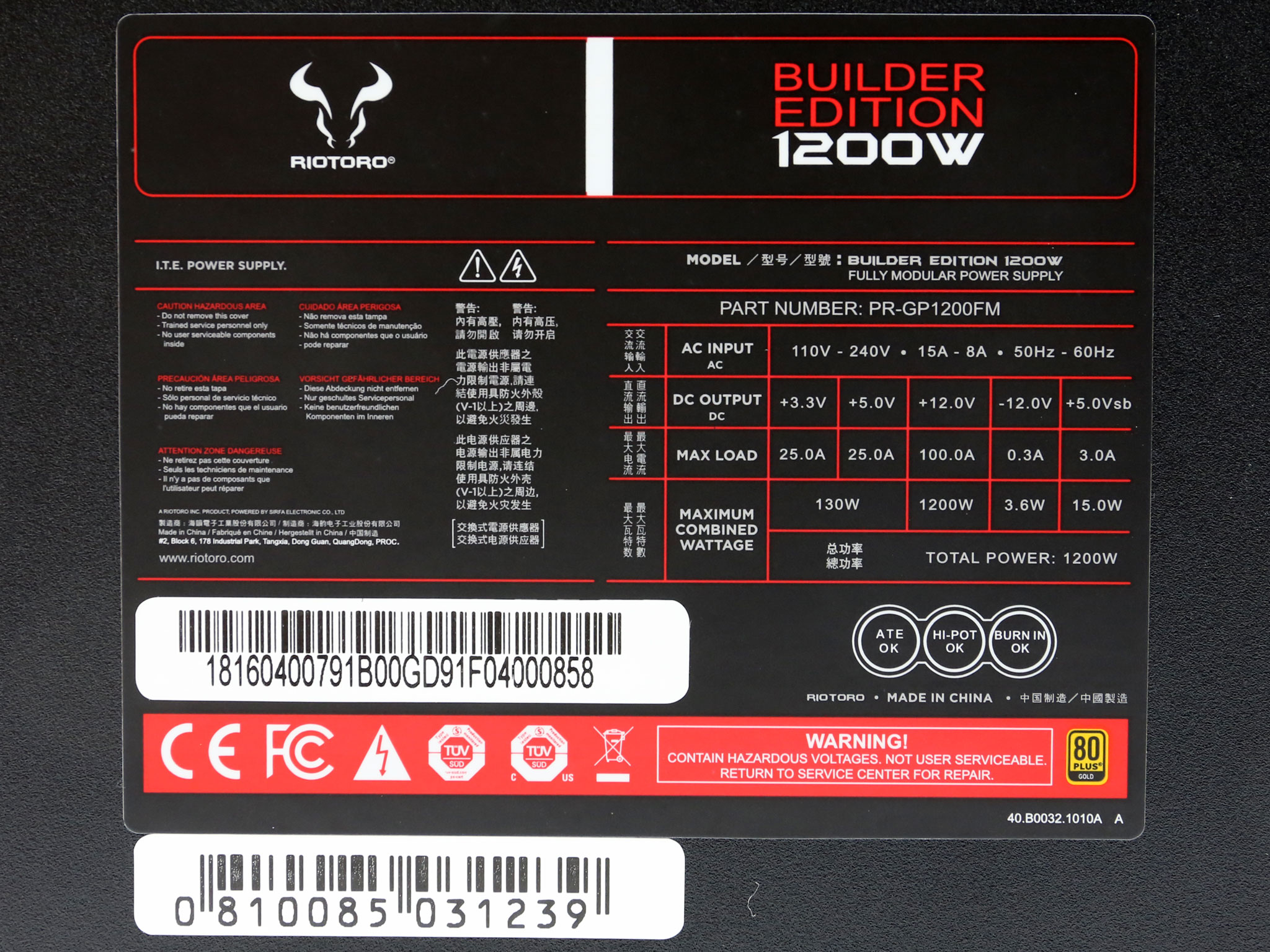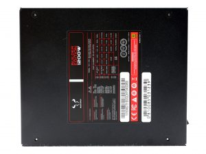 The stickers on the sides are not that fancy, while as usual the power specs sticker is installed on the unit's bottom side. Besides the power table it also depicts the serial number of the product along with some certification logos (CE and FCC).