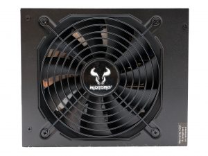 On the face of the box there is a photo of the PSU with the fan grille on display. On the left side we find the model number while on the right side the major features of the PSU are highlighted. The 80 PLUS Gold badge along with an icon showing the five year warranty are also depicted on the box's front side.