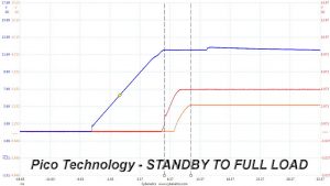 In the second test, we set the PSU to standby mode, dial full load and start it afterwards. In the last test, while the power supply is completely switched off (we cut off the power or switch the supply off through its power switch), we dial full load before restoring power.