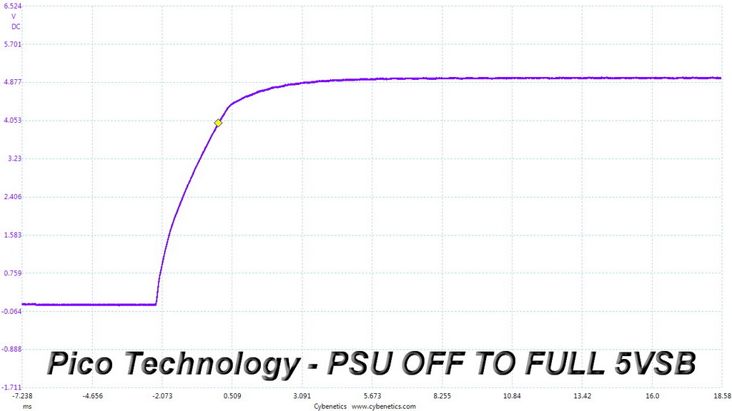 For our first measurement, we turn the PSU off, dial in the maximum current the 5VSB rail can handle, and switch the PSU back on.