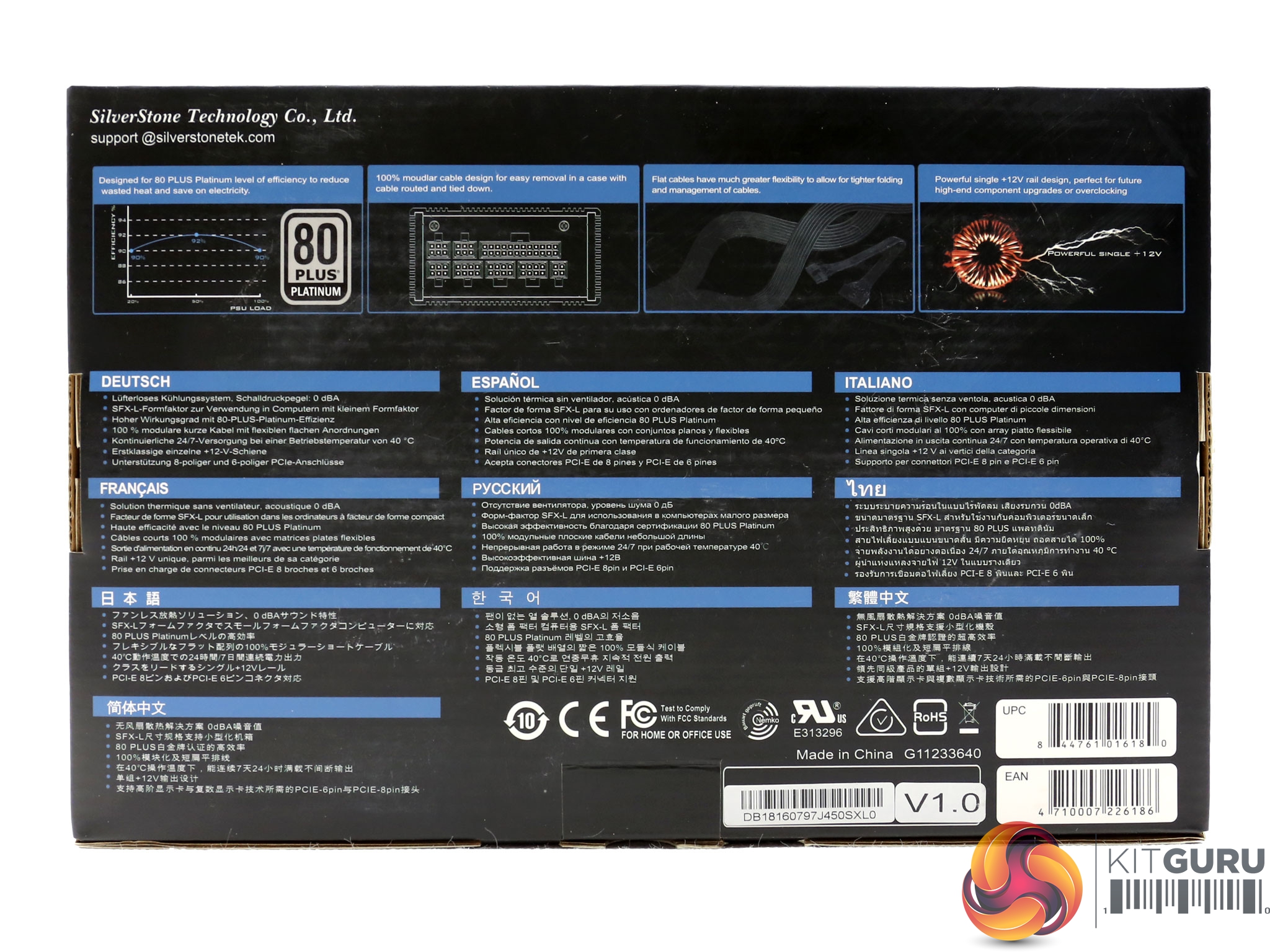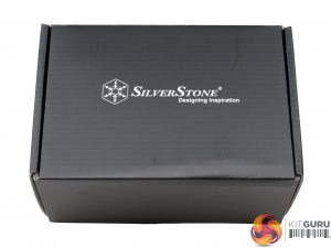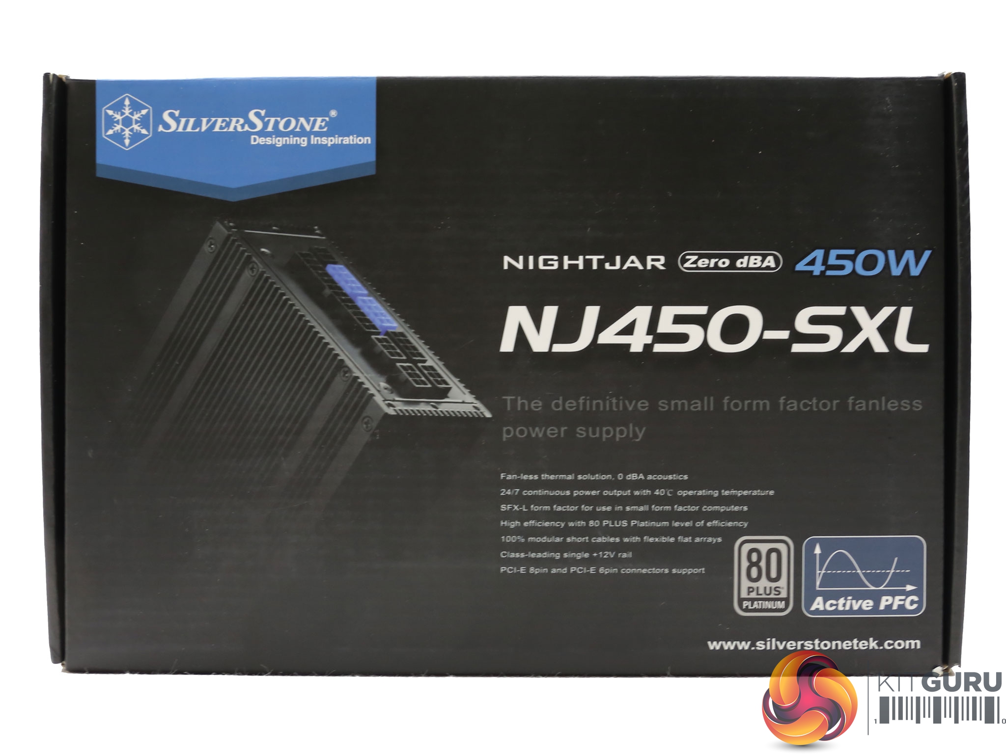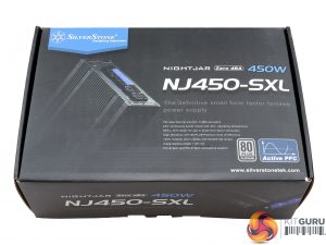 The box is small and at its front side we find the 80 PLUS Platinum badge and a list of the most notable features of this product including the passive design. The max operating temperature of 40°C, the SFX-L platform, the fully modular cable design and the single +12V rail.
