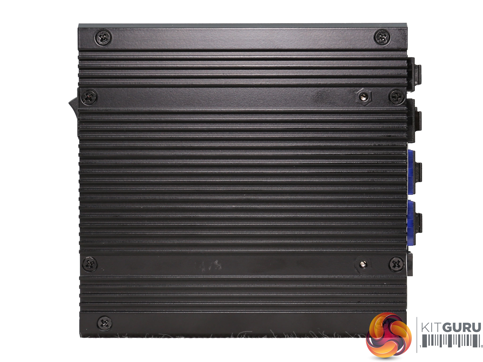 This unit is built like a tank, because it is almost fully covered by thick heatsinks. At the front side, where usually there are ventilation holes, there are no vents.