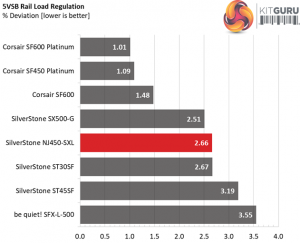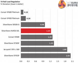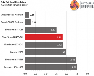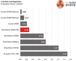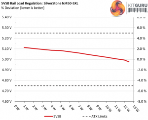 The load regulation at +12V is tight, while at 5V and 3.3V is within the 2% range, so it is satisfactory. Finally, the 5VSB rail stays in the 3% range.