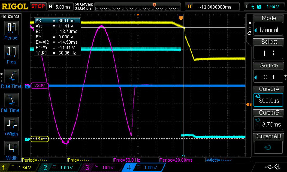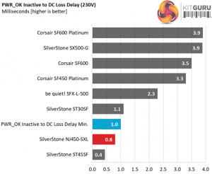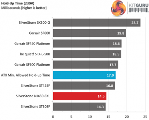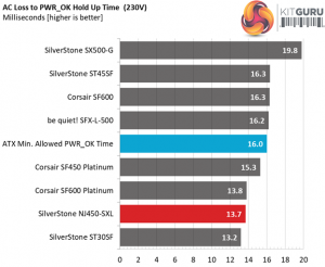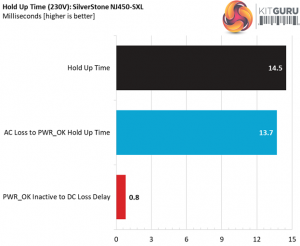 The hold-up doesn't exceed 17ms, as the ATX spec dictates, however it is very close. Obviously there was no space available to install a larger bulk cap. On the bright side, the power ok signal is accurate.