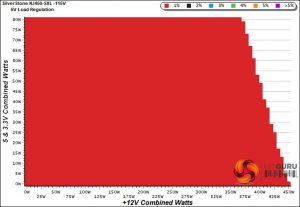 To generate the following charts, we set our loaders to auto mode through our custom-made software before trying more than 1500 possible load combinations with the +12V, 5V, and 3.3V rails. The load regulation deviations in each of the charts below are calculated by taking the nominal values of the rails (12V, 5V, and 3.3V) as point zero. The ambient temperature is between at 30°C (86°F) to 32°C (89.6°F).