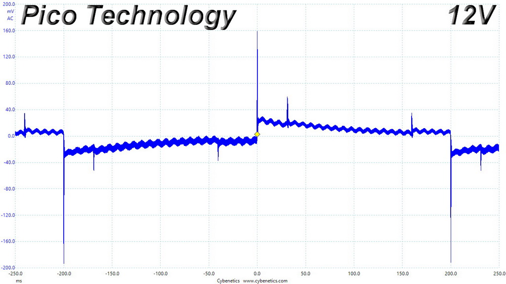In the second test, we dial the maximum load the +12V rail can handle and start the power supply while it is in standby mode. In the last test, while the PSU is completely switched off (we cut off the power or switch it off through its power switch), we dial the maximum load the +12V rail can handle before restoring power. The ATX specification states that recorded spikes on all rails should not exceed 10 percent of their nominal values (+10 percent for 12V is 13.2V, and 5.5 V for 5V).