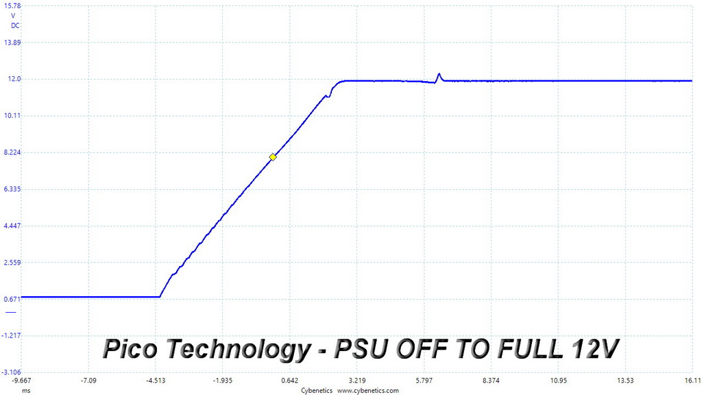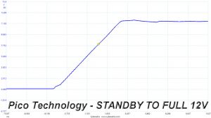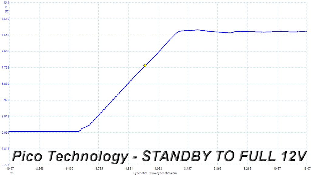 In the next set of tests, we measure the NJ450-SXL’s response in simpler transient load scenarios—during its power-on phase.