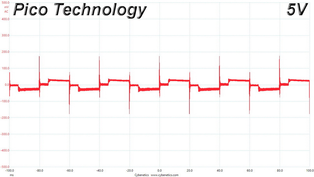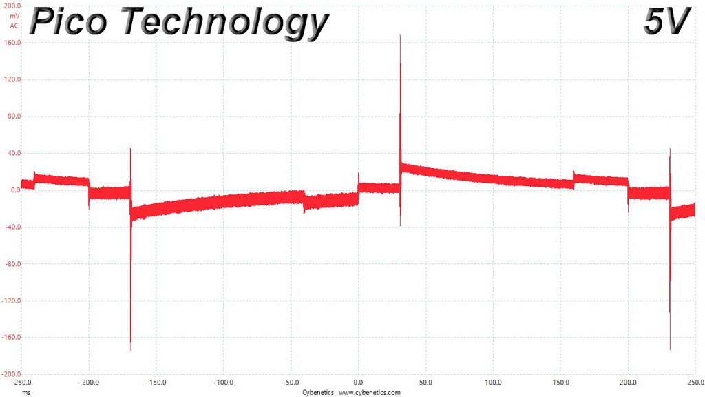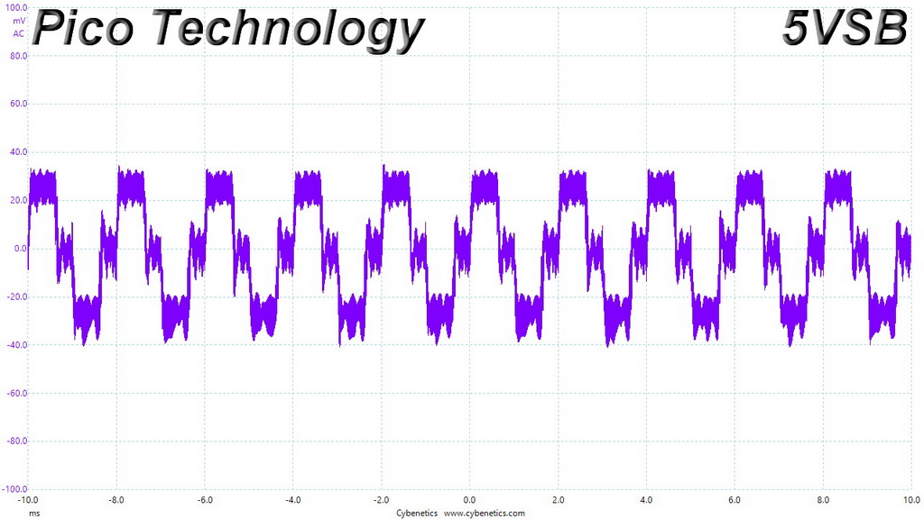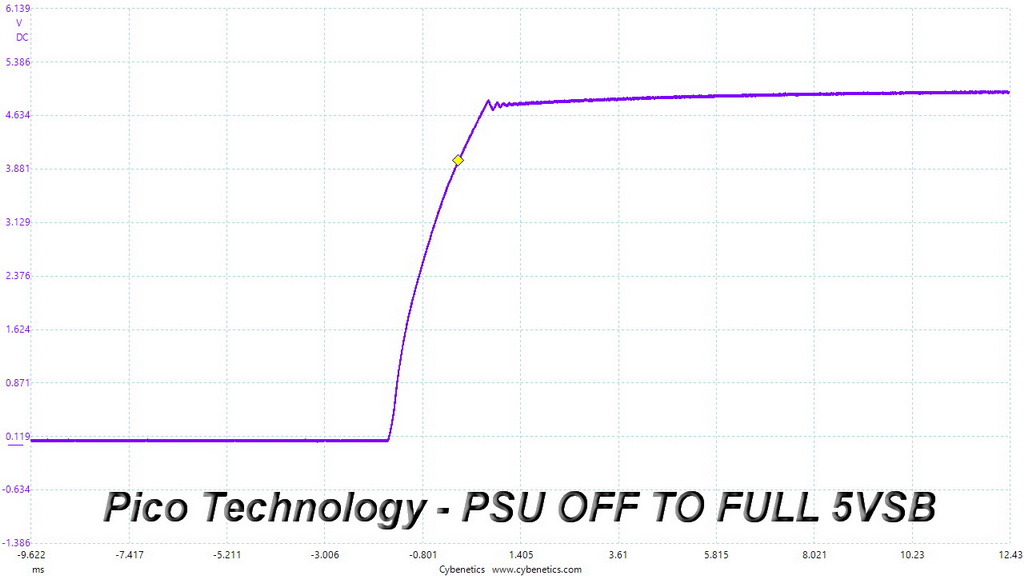 In all of the tests, we use an oscilloscope to measure the voltage drops caused by the transient load. The voltages should remain within the ATX specification's regulation limits.