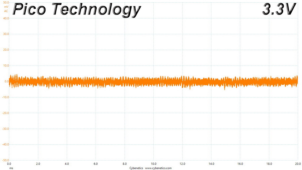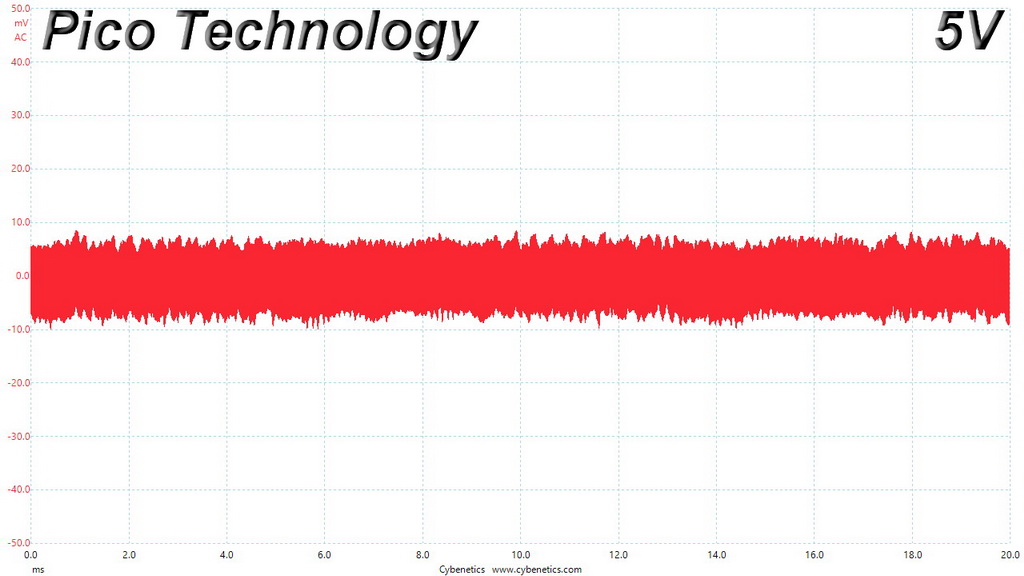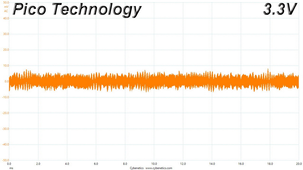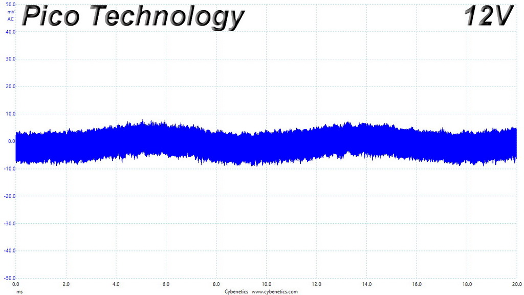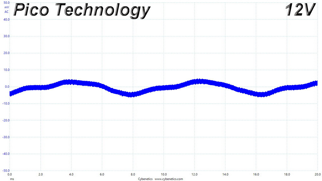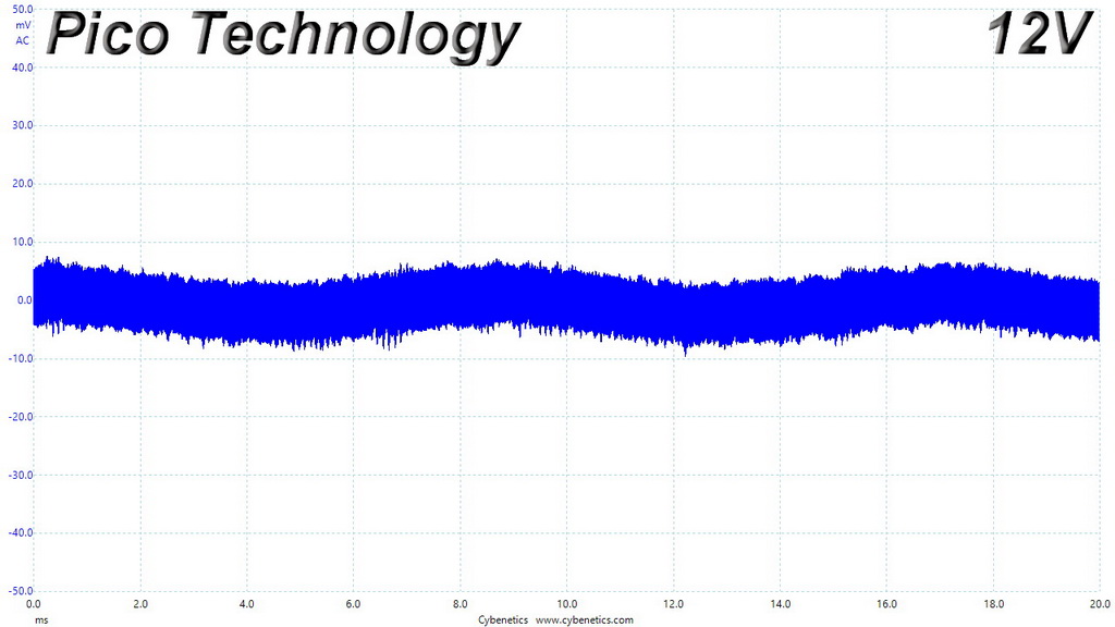 The ripple suppression is excellent on all rails, without using modular cables with in-line caps.