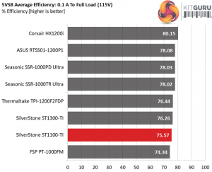 The supply should also achieve higher than 75% efficiency at 5VSB under full load, or with 3A if its max current output on this rail is higher than 3A.