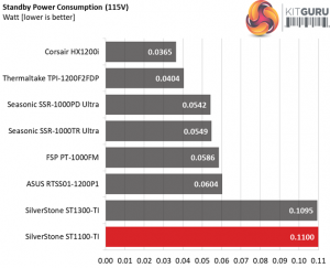 In the table below, you’ll find the power consumption and voltage values of all rails (except -12V) when the PSU is idle (powered on, but without any load on its rails), and the power consumption when the unit is in standby mode (without any load, at 5VSB).