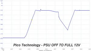 In the next set of tests, we measure the ST1100-TI’s response in simpler transient load scenarios—during its power-on phase.