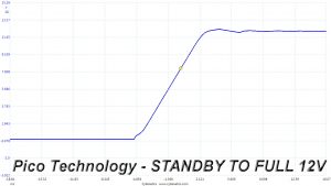 In the second test, we dial the maximum load the +12V rail can handle and start the PSU while it is in standby mode