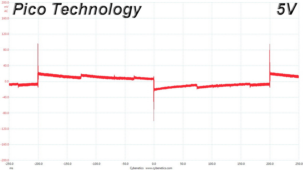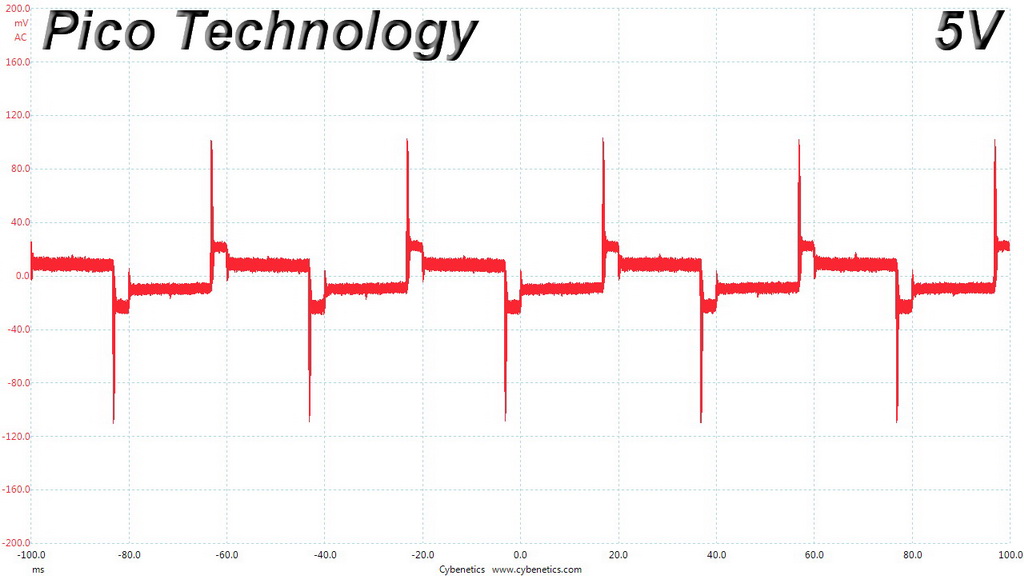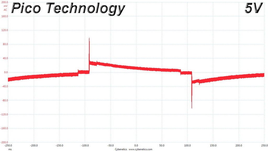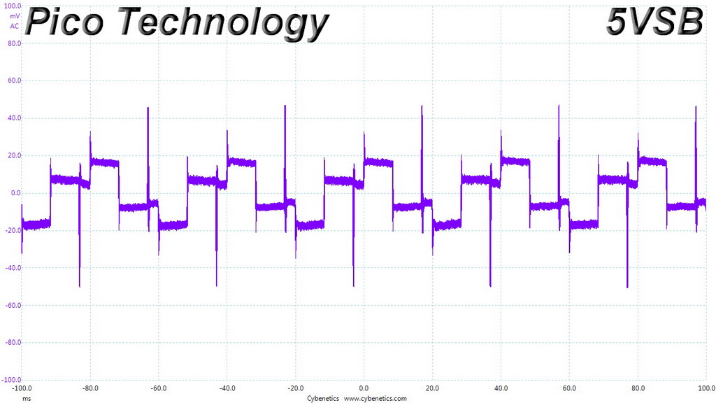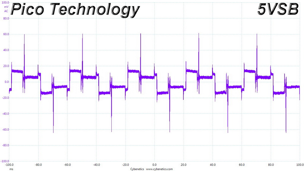 In all of the tests, we use an oscilloscope to measure the voltage drops caused by the transient load. The voltages should remain within the ATX specification's regulation limits.